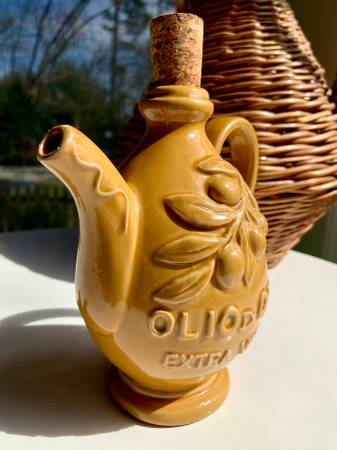 Imported Olive Oil Embossed Ceramic Italian Decanter /w Cork (from Sur la Table)