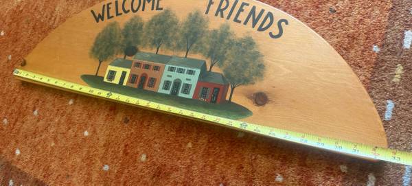 WELCOME FRIENDS Handcrafted Wood Arched Painted Sign Plaque Signed...