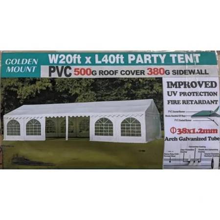 New 20x40 Party Tent Roof Cover Material 17.6oz PVC Sidewall Material 13.4oz PVC 1.5’’x0.05’’ Arch Galvanized Tube Quick assembly and disassembly Waterproof and windbreak Design of transparent false...