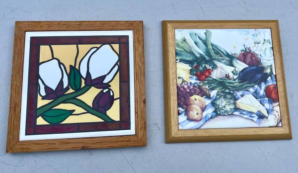 Vegetable or floral trivets for the kitchen for your hot dishes or pans are $5 each. They can hang on the wall too. Ceramic and wood. View my other postings by clicking the user link on this...