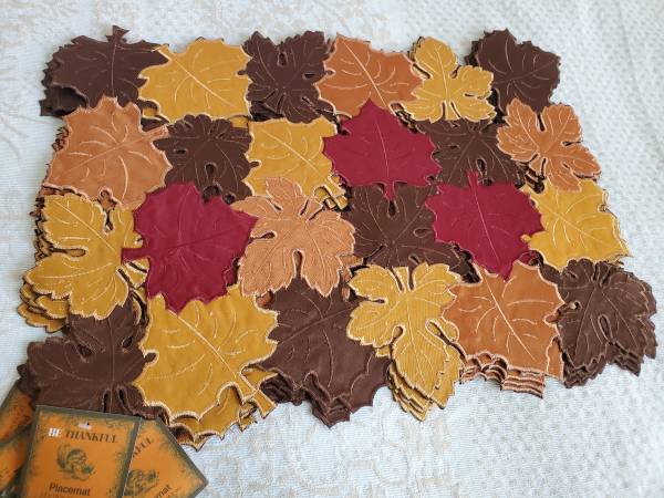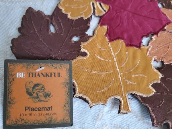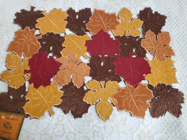 Set of 6 fall placemats 13 x 19 inch and table runner 13 x 70 inch, new, $30.