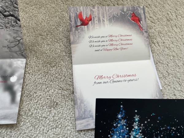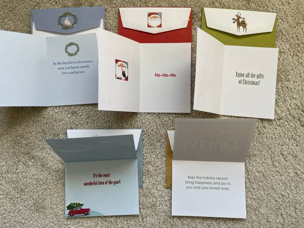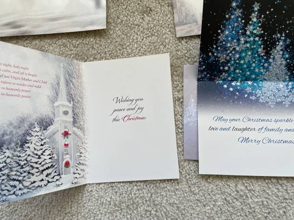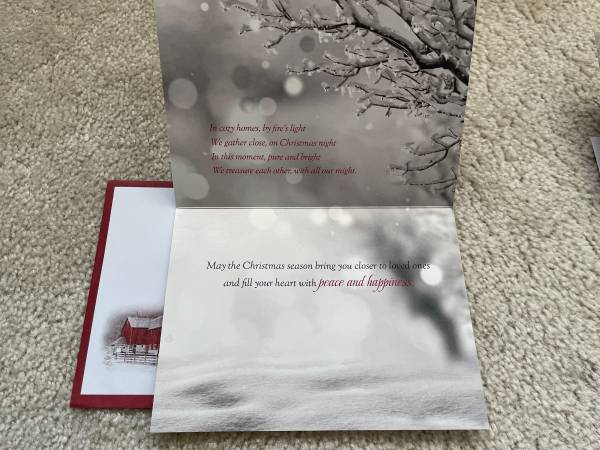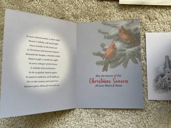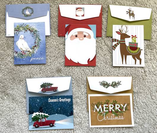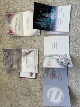 Selling beautiful sets of Christmas Seasons Greeting cards - brand new excellent condition. - Set 1 - includes 5 cards with envelope. Each card is about 4.5 x 6 inches Asking $5 obo - Set 2 -...