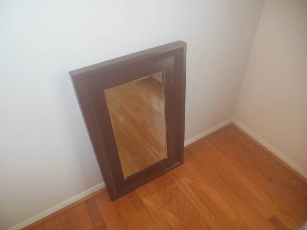 Mirror with wooden frame. Good condition. $15 See pictures. • Size: 32" H X 20" W • You can hang it vertically or horizontally. • Paintable Cash and carry only. Serious inquiries only. Pet...