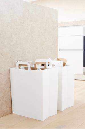 Made in Vermont from 100% recycled plastic, RE.BIN can be used with a paper grocery bag liner for an easy, clean, sustainable recycling experience.