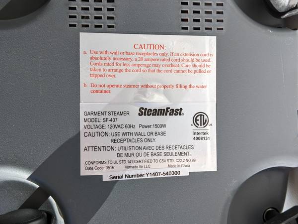 Steamfast SF-407 Canister Fabric Steamer