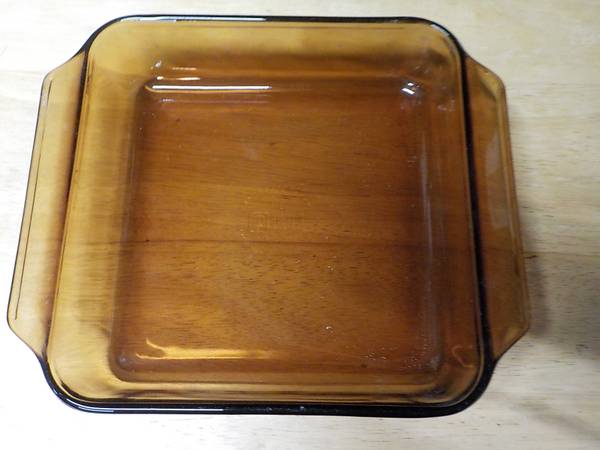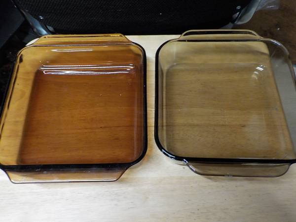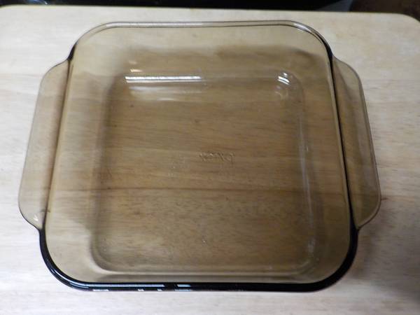 SET OF 2 VINTAGE SQUARE GLASS DISHES; PYREX AND ANCHOR HOCKING. THE PYREX IS 8 X 8 X 2 AND 2 QUART. THE ANCHOR HOCKING IS 8 INCH AND 1 1/2 QUARTS. $25 FOR BOTH. $15 FOR ONE.