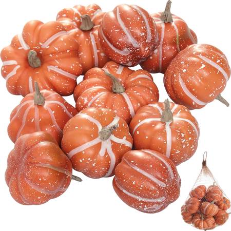 BAPPEY Pumpkin Decor, Mini Pumpkin, 11PCS Fall Pumpkin Set, Orange Faux Foam Pumpkins for Wedding Kitchen Dining Table Halloween Thanksgiving Fall Home Holiday Decorations