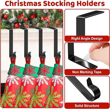 SPSHENG Christmas Stocking Holders for Mantle, Stocking Holders for Mantle Set 4, Fireplace Stocking Hangers for Tickness Mantel, Metal Hooks Garland Hanger for Christmas Party Home Decoration-Black