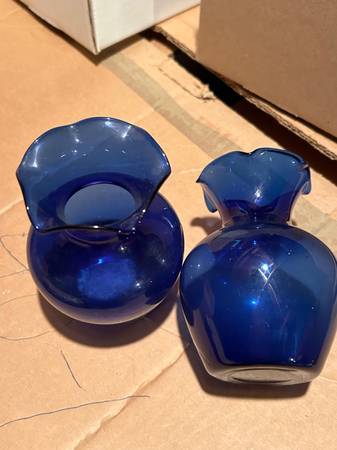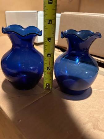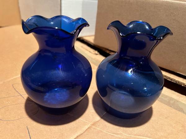Two Small Cobalt Glass Flower Vase Approx 4 half inch tall, excellent cash both for $15