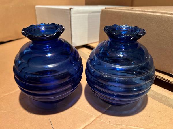 Vintage USA TWO Cobalt Blue Vase. Round - household items - by owner...