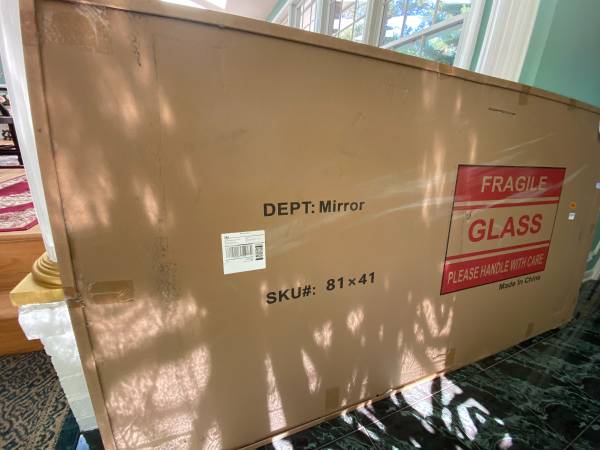 Oversized mirror with stand. Ideal for your foyer, Livingroom, bedroom Size: 41" x 80" Sturdy. Brand new with its box. Too large for our bedroom. Missed deadline for return. Wedding rental...