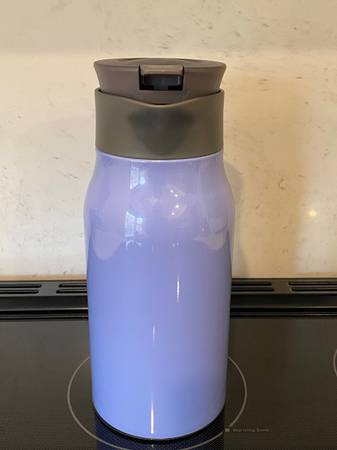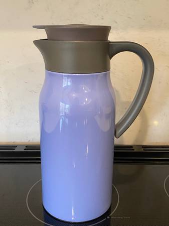 New, periwinkle color, stainless steel coffee/hot beverage carafe. Holds 48oz.