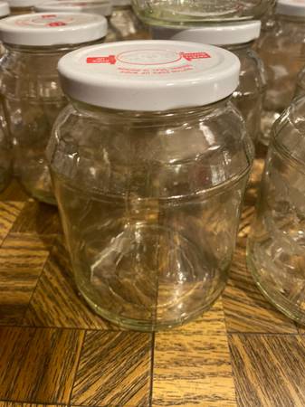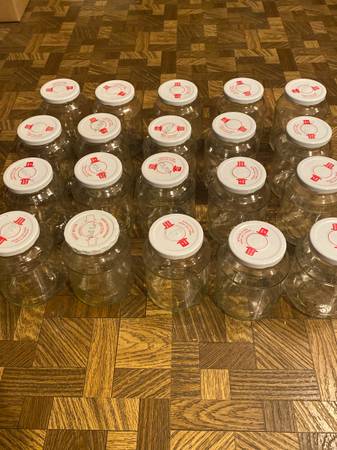 Matching set of 20 Glass Storage jars, each is sterilized and holds 24 oz.