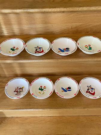 Set of 8 nostalgic Kellogg's melamine cereal bowls from the 90s. Varying images on each bowl. All in very good condition.