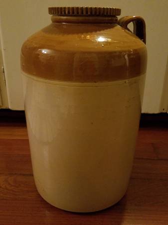 Parshuram Morvi crock pickling jar, two and one-half gallon, with screw off top, from India. Fifteen plus inches tall. Impressive size, usable, great hand made aesthetic.