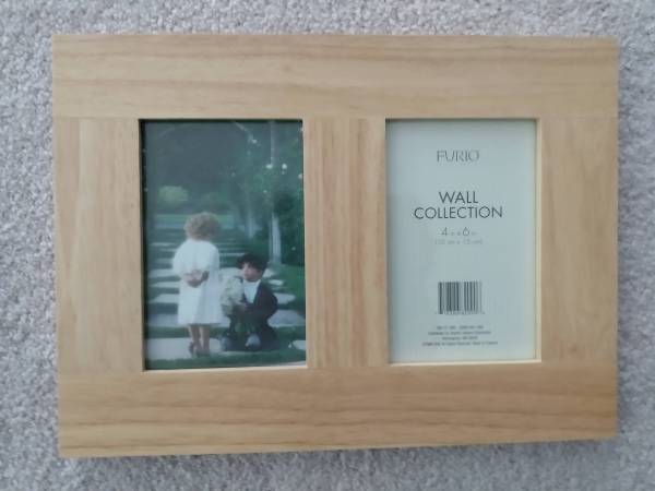 $10 for two solid wood frames, each with two openings; glass to protect images; hooks to hang on wall. One has openings for 2- 5 x 7 photos, overall size 10 1/2 " h x 15" w. One has openings for 2-...