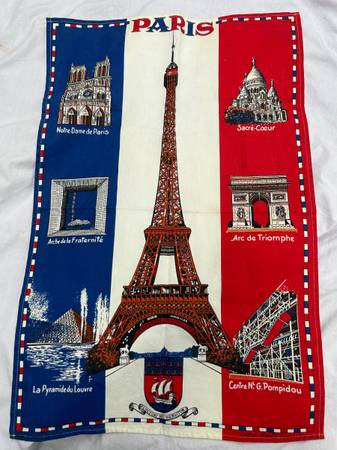 Colorful and artistic Paris France souvenir kitchen/tea towel. Made in France, 100% cotton, never used. Dimensions 18" x 27 1/2"