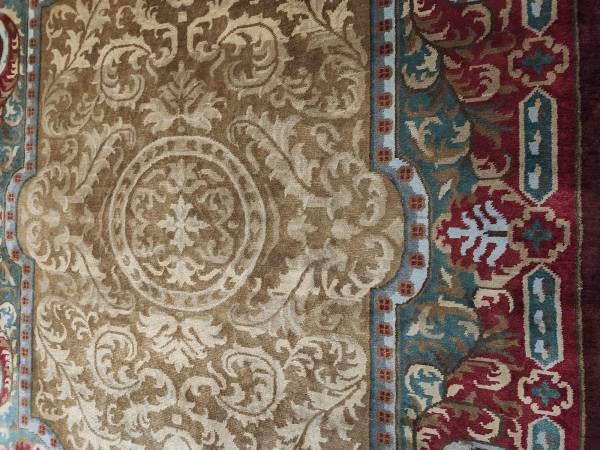 Gorgeous 8 x 10 hand knotted indian made aubosson design area rug. 100 percent wool Excellent condition Over $8000 retail savonnerie