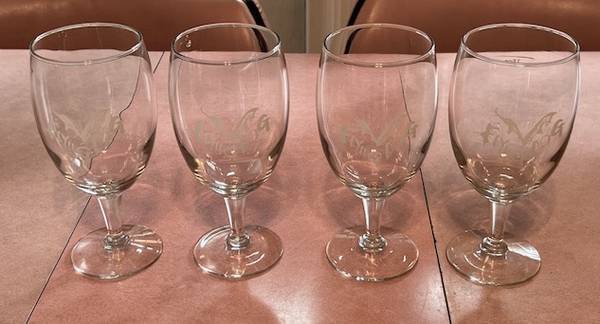 Set of four Flying Dog beer glasses. Each marked with Flying Dog logo on front and fill line on back. Great condition, no chips. Silver Spring, just north of Colesville. Please see my other postings...