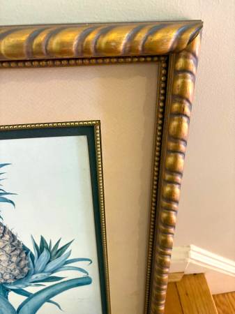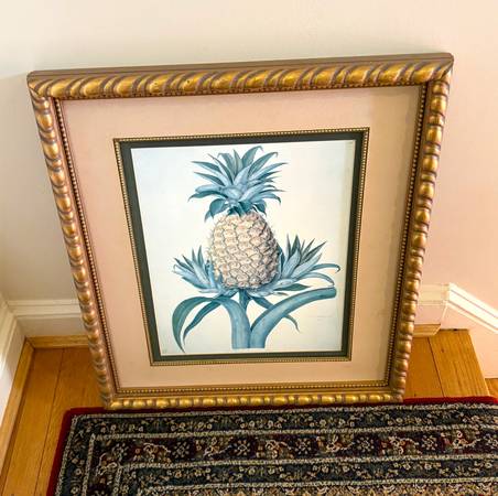 Framed Pineapple Artwork with Ornate Gold Frame No Glass in the Frame 26 inches tall 22 inches wide