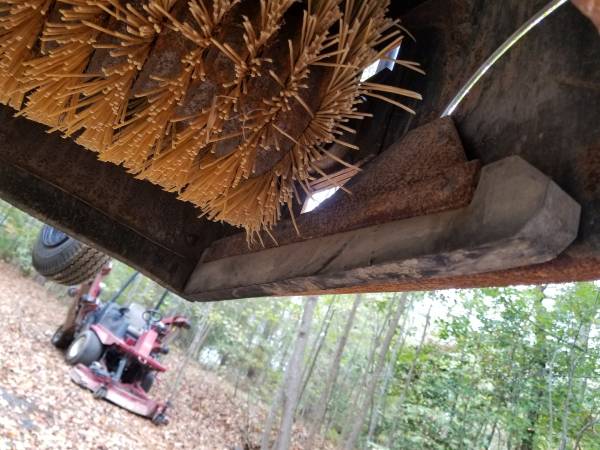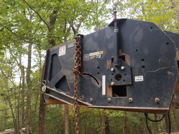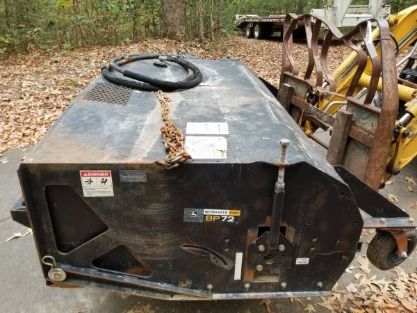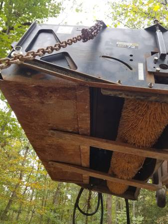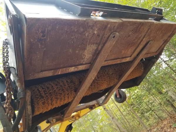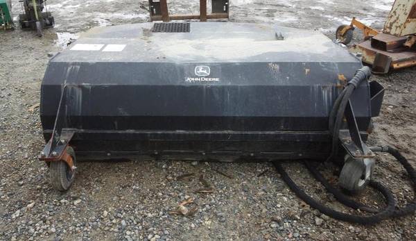 John Deere BP72 sweeper / pick-up broom collection bucket for sale. Has the option wheels up front. Bristles are worn and should be replaced. Good bottom. Needs a carrier bearing.