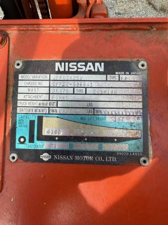 Nissan 5,000llb Capacity Forklift Year: 1986 Propane engine (propane tank not included) 187 inch lift height 3-Stage mast