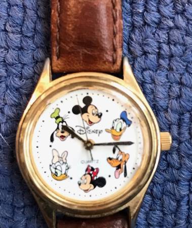 We are downsizing and offering for sale a vintage Disney Time Works watch with genuine leather band and stainless steel back (as shown). It is in excellent condition and has always been in a smoke free household. I am asking only $20. These collectible watches sell for much more and that is not including tax and shipping. If you are interested or would like more photos, please call landline show contact info