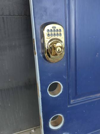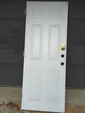 6 panel, fire rated steel with wood core exterior door Features (2) 2 1/4" bores for 2 3/8" backset knob and deadbolt. Also features a schlage electronic deadbolt (I do not have the key or...