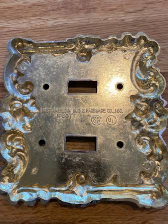 Vintage metal switch plate cover in ornate design by American Tack and Hardware from 1987. Screws included.