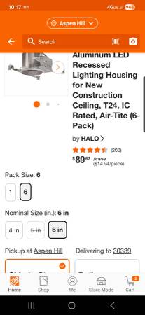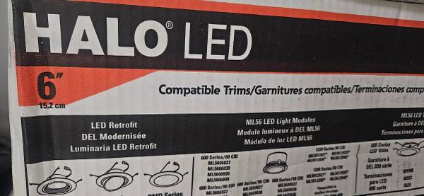 Halo LED Recessed Lighting Housing. IC rated. Pack of 6 I have 7 boxes available $50 each