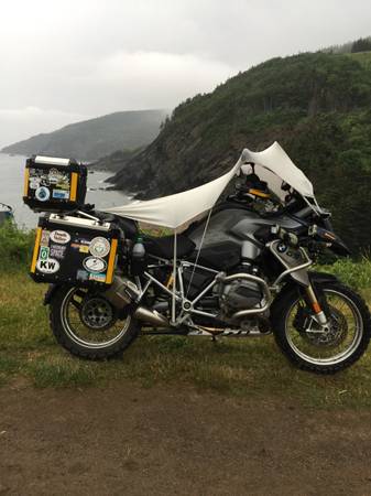Sunglass case One clear eyeglass lens, three pair with dark lens. RAM mounts for telephone, coffee cup and GoPro. Water bottle holder. Helmet lock. Two, 1-liter gas bottles (mounted on rear of left pannier). Waterproof fabric rain protector. Padded backrest for passenger. 7β Apple iPad Mini mounted as GPS. WunderfLINQ hardware and software computer readout for iPhone. CTEK battery trickle charger. Tool tube (not installed). Lockable tool box (not installed.) Shorter gear shift and brake levers (not installed).
