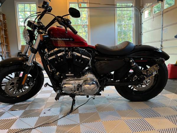 Red and pristine. Under 500 miles. Includes trickle charger. Forty-Eight, named after Harley-Davidson’s classic "peanut" fuel tank from 1948, has the coveted EVO Evolution engine. Retro-inspired design. Riders appreciate its unique look, and praise its performance in both urban and highway settings.