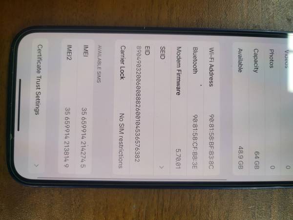 Apple iPhone 12 64GB A2172 Factory Unlocked in Blue. 12.0 MP camera resolution with Hexa Core processor. Features include speakerphone, accelerometer, front camera, 3D depth camera, Bluetooth, digital compass, fingerprint sensor, GPS, MMS, motion gesture control, OLED display, pressure sensor, Retina display, streaming video, and Wi-Fi capability. In mint, like-new condition.