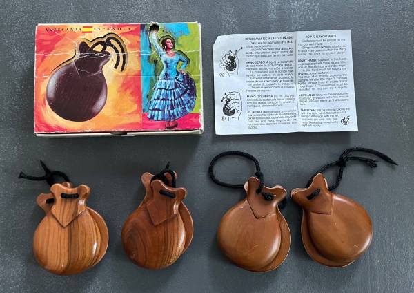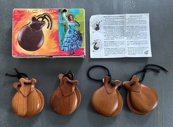 Musical vintage professional wood castanets. Made in Spain for $20 in original box. *Will include a second set of 2 without box. See my other postings with the user link. ~ Kathy