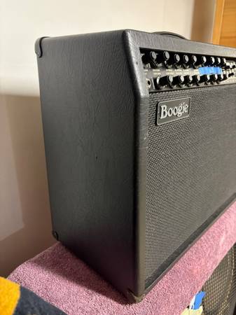 Up for sale I have a Mesa Boogie Mark IV widebody combo. This is the B version with the nicer R2 second channel. This amp has 3 channels that can go from jazz to metal with ease. It really sounds killer. Cosmetic-wise, it has some wear towards the bottom area of the amp with a couple of tolex tears underneath and some wear on the bottom of the footswitch, but otherwise, the combo is in very good shape overall. It features an 8ohm Eminence speaker and spring reverb. All features work perfectly (the blue tape is fully removable and I just use it to tone down the brightness of the lights). No trades please unless it is a PRS Custom 24.