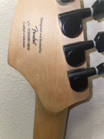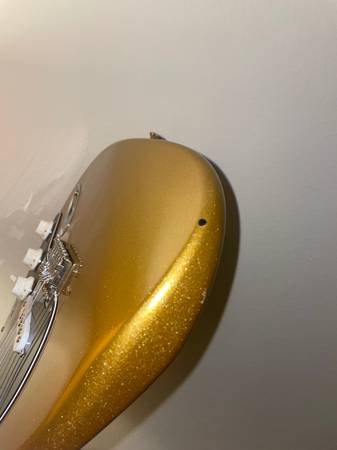 Some play wear. Two small finish chips but no sharp edges. Headstock has some marks like the previous owner hit it on something a lot and may have sanded the back just a little. Nothing that affects playability. It has been sitting unplayed for about 6 months, so will need a full setup. I can include the white pickguard if you want it (and I can find it).