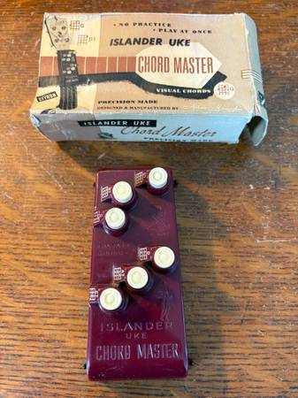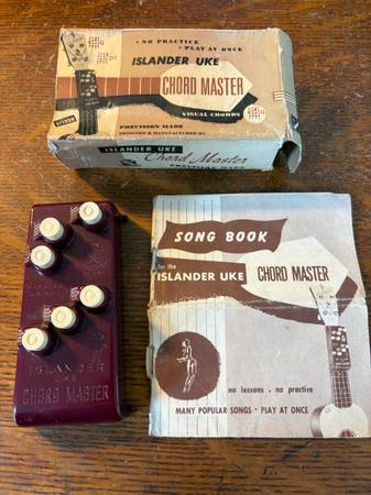 Vintage 1950s "Chord Master" device allowing the novice ukulele player to instantly play ukulele chords. Fun gift.