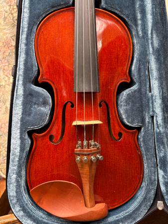 Higher model instrument with flamed maple back and a nice balanced tone - a big step up from the typical student violin. Includes bow, case, and rosin.