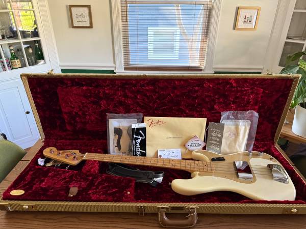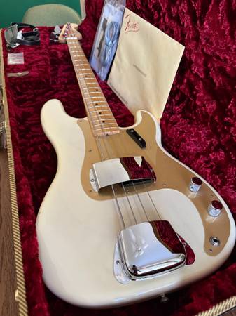 I am looking to sell my 2013 Fender 58 American Vintage Precision Bass. This bass is in very good condition, with a couple of apple seed-sized nicks on the upper bout. This bass comes with original hardshell case and case candy. The bass weighs a shade under 8.6lbs with pickup covers on. It is strung with Thomastik-Infeld Jazz flatwounds.
