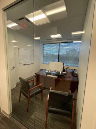 The available windowed office is furnished (computer not included). The space is modern and attractive.