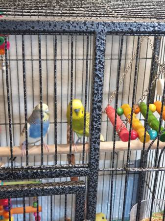 A family of two parents and three children with eggs in the nest. Price: $150 including cage and toys.