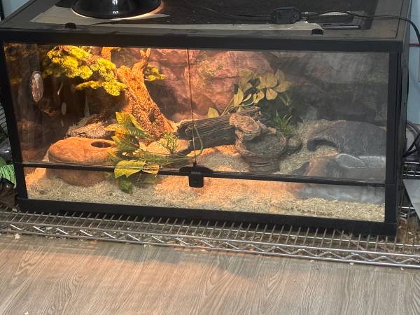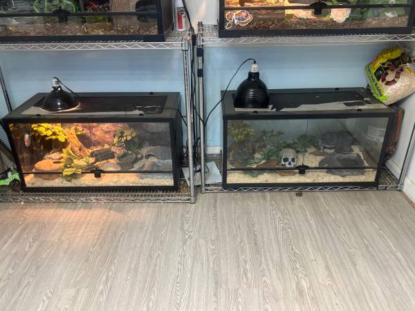 Rehoming 2 tamed corn snakes with entire set up, 40 gallon front opening tanks, lights, decor, extra bedding, etc. $250 OBO
