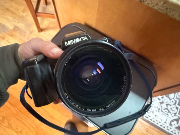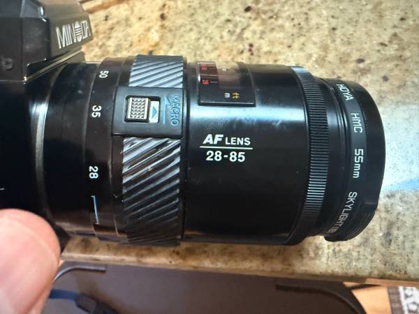 The camera is tested and in good used condition. Body looks good. There is some markings but nothing that affects camera use The camera comes with a strap and a couple lens covers. Lens is a Minolta autofocus lens 28-85mm. There is also a Hoya HMC 55mm skylight lens attachment included with cap.