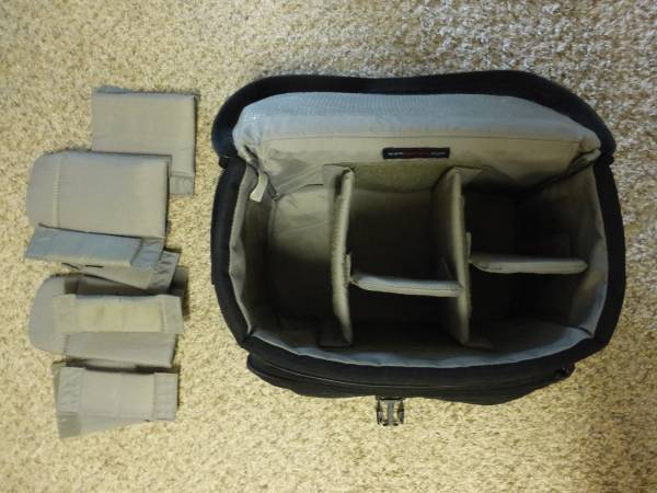 Pro level camera bag with adjustable padded dividers to store, transport and protect all your gear. You can easily fit a DSLR or mirrorless camera with 2-3 lenses and a flash. Made from water-resistant, tear-resistant Cordura nylon. Extra padded dividers allow for a customized fit.