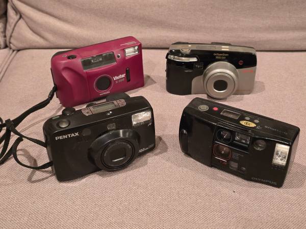 These cameras came from a larger film lot I picked up — just not the ones I’m keeping. They all look clean and in good shape. Included in the lot: Olympus Infinity Twin – dual-lens model...
