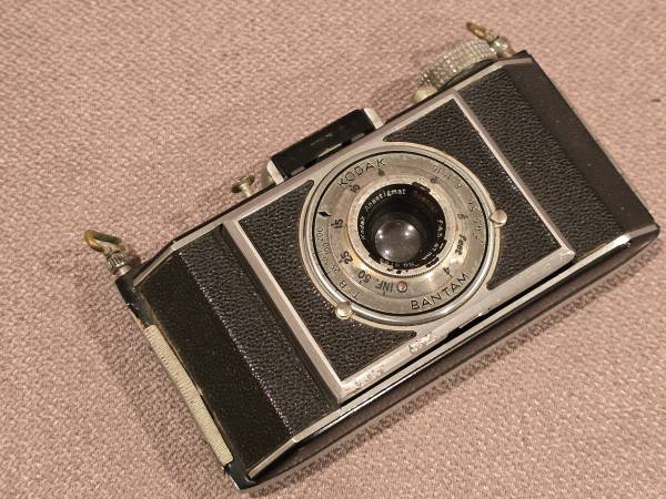 Kodak Bantam – folding Art-Deco camera, display only, not functional but looks great on a shelf.