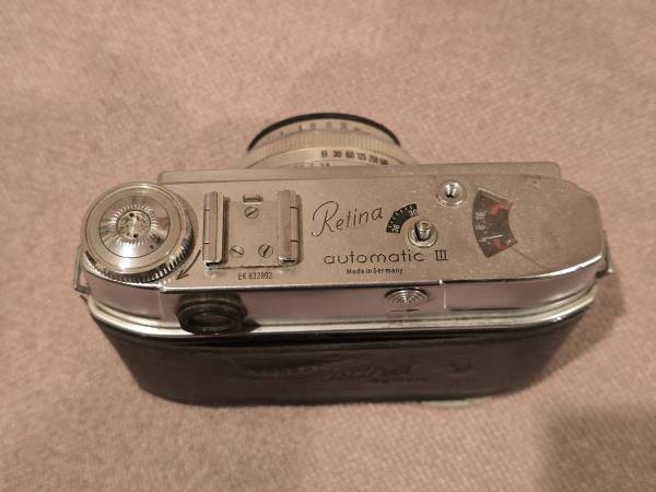 Kodak Retina Automatic III – shutter fires but aperture is stuck. Lens and body are clean overall.