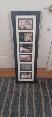 New frame for 6 photos sized 4.5x6.5 inches. Black border. Acrylic glazing.