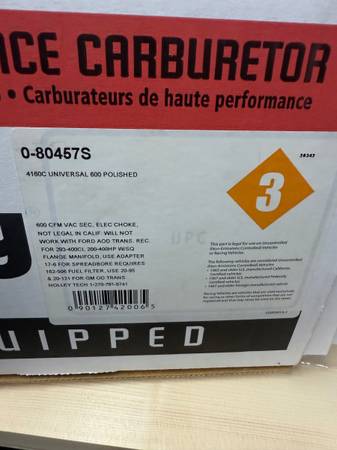 Holley 600 cfm 4160 carburetor. Needs cleaning/adjusting or rebuild. Idled well but had flat spot accelerating. $100 cash only.