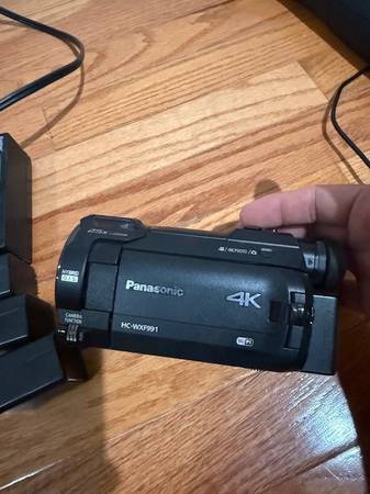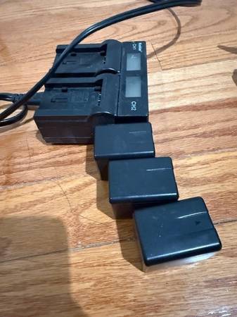 Almost brand new. used it a few times for daughters' soccer games. comes with 4 batteries, charger -no memory card-